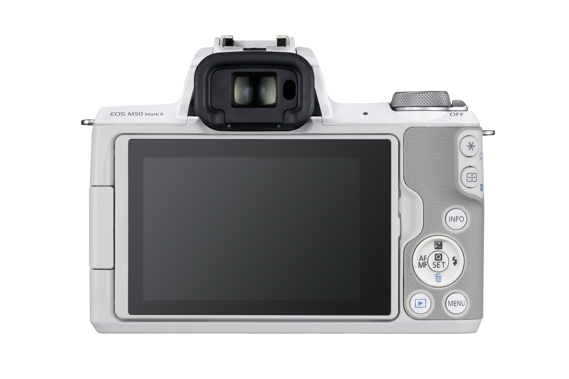 Fotoaparát EOS M50 Mark II svojou flexibilitou vyhovie každému štýlu a potrebám. Možno ho ľahko nosiť kamkoľvek so sebou, pripojiť k nemu mikrofón, prípadne ho pripevniť do gimbal. Otočný displej a pohotový elektronický hľadáčik (EVF) umožňujú komponovať záber v každej situácii – pred aj za kamerou.