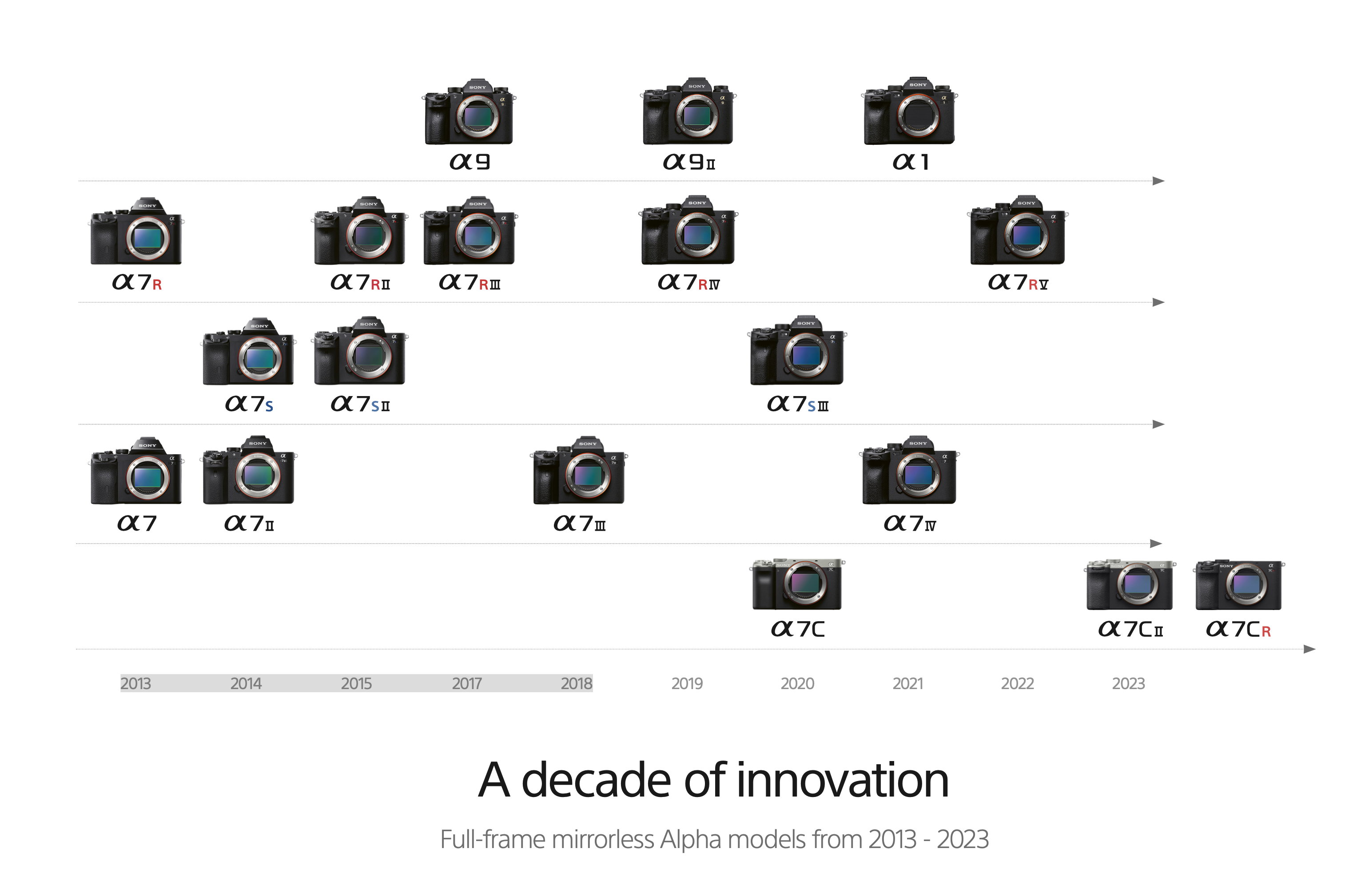 - 2013: Predstavenie prvých bezzrkadlových fullframových fotoaparátov na svete – Sony Alpha 7 a 7R – spôsobilo revolúciu vo fotografovaní. Tieto priekopnícke modely znamenali začiatok stále pokračujúceho vývoja radu Alpha.