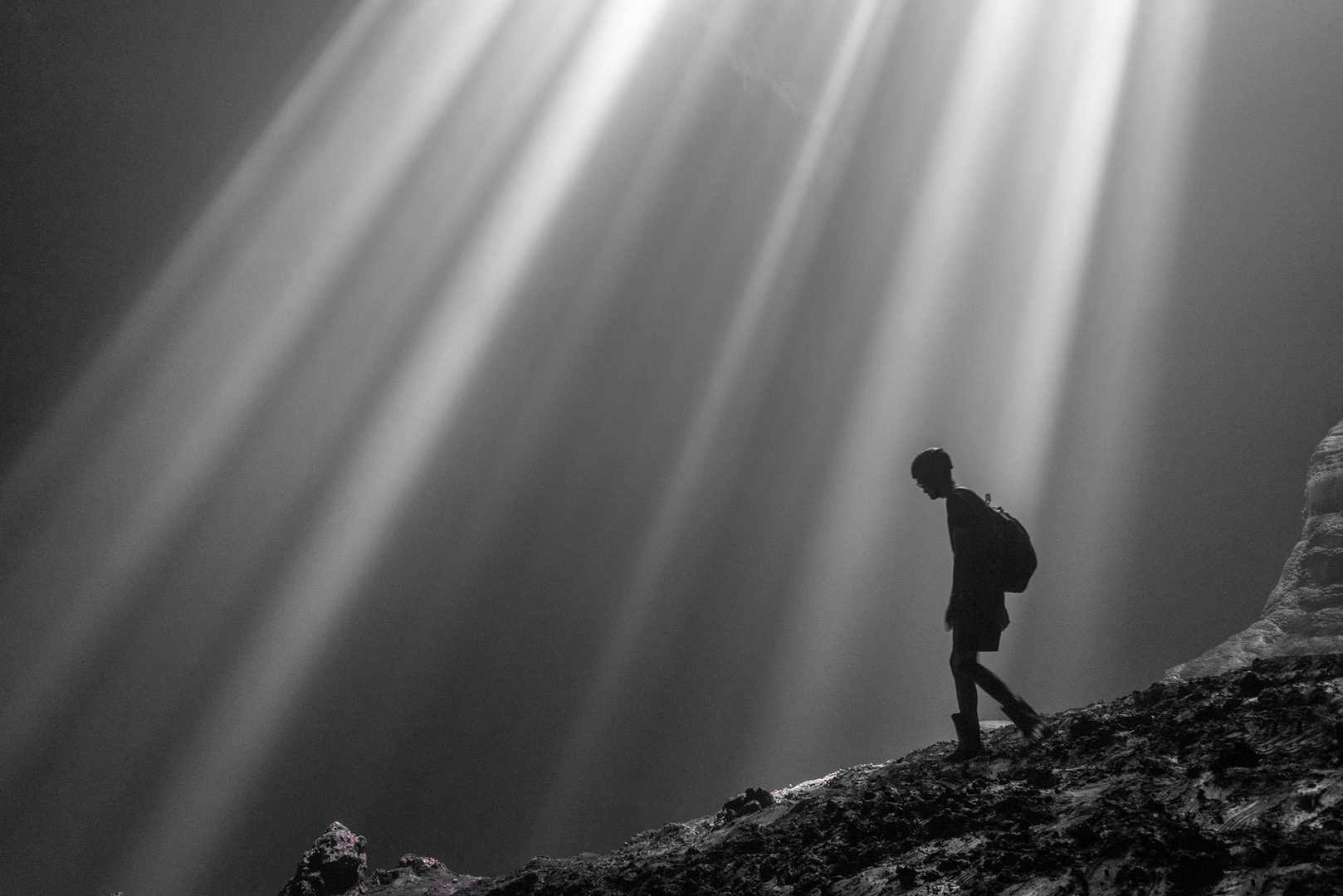 Fotografia vznikla v jaskyni Goa Jomblang, na ostrove Jáva, v Indonézii. Na to aby sa to podarilo, treba mať aj trochu šťastia, lebo aj v tomto prípade je všetko závyslé od počasia. Len vďaka jasnej oblohe v dopoludňajších hodinách, je možné sledovať lúče svetla, dopadajúce do čierného sveta pod zemským povrchom.